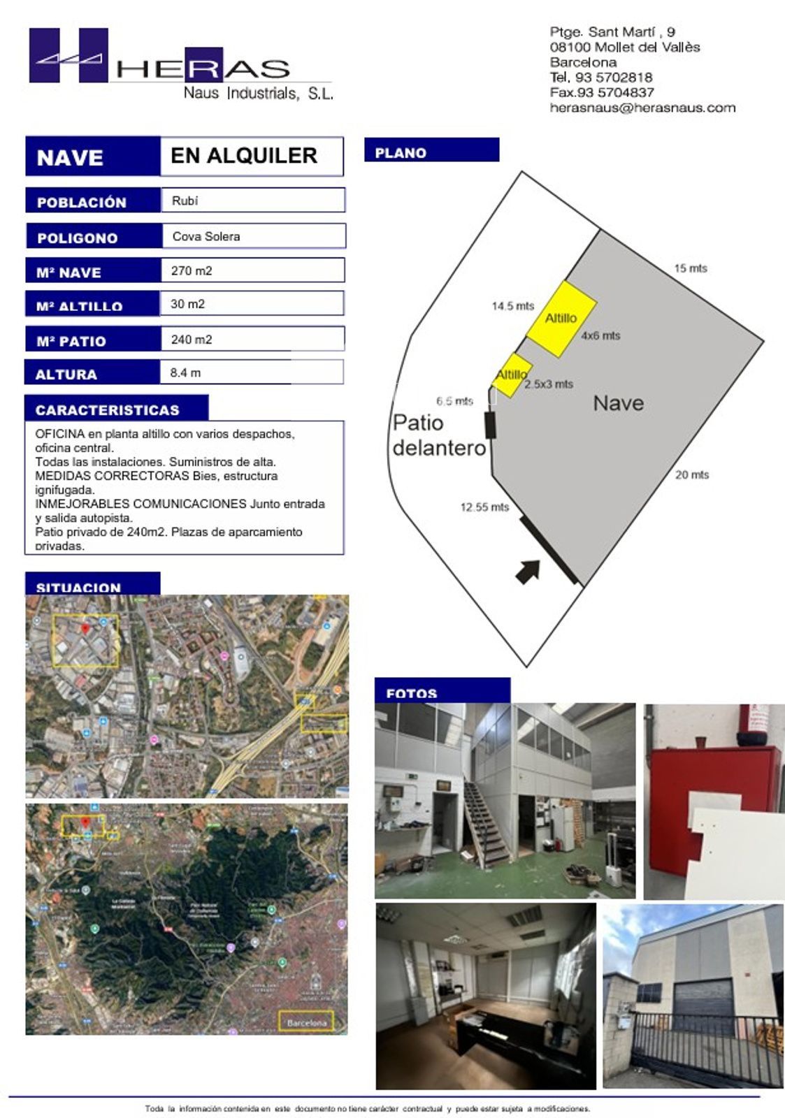 OFICINA ubicada en planta altillo. El inmueble dispone de todas las instalaciones en perfecto estado, con suministros dados de alta. Cuenta con medidas correctoras de seguridad, incluyendo BIES y estructura ignifugada. Dispone de un patio privado de 240 m².