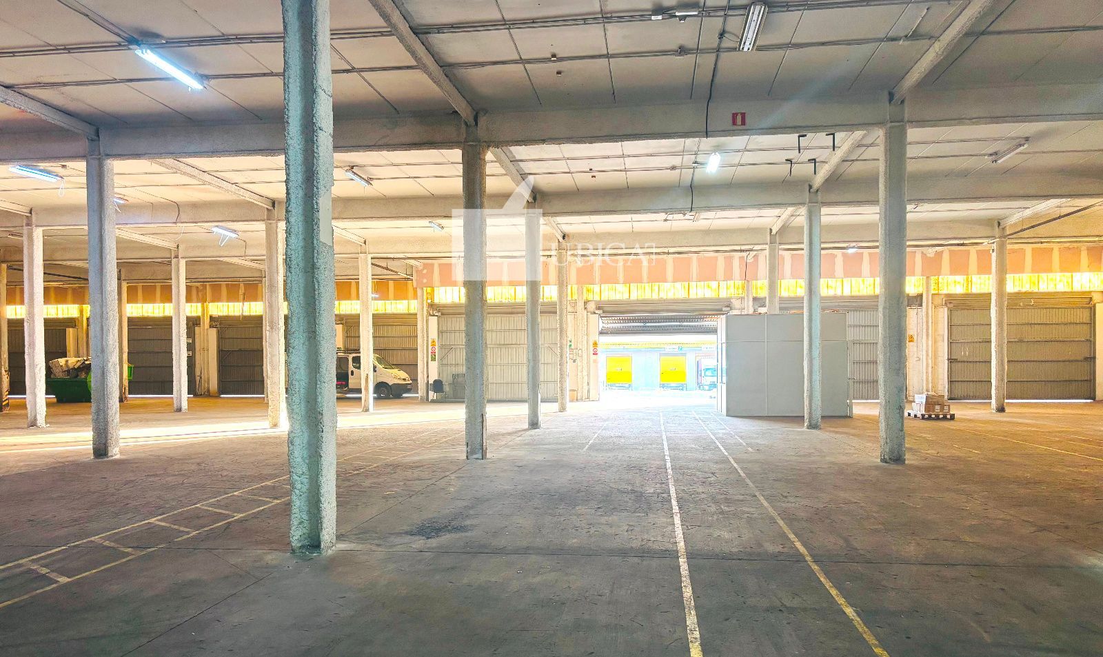 15 muelles de carga: 13 muelles hidráulicos + 2 fijos (9 hidráulicos + 2 fijos en fachada frontal + 4 hidráulicos laterales)